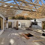 Roof time, and the steel was delivered on the Wednesday with the installation scheduled for Friday. Friday was also the day of Lena’s cataract surgery and important things take precedence. Things went thoroughly well with the operation and Lena is very pleased. Things went well with the roof as well as I was informed. Or half of it, at least. It took the morning. The scaffolding used for the roof then had to be moved and installed in the back — a storey higher. Once done, the fascia boards and roof edges were attached to the ends of trusses. While over the back of the garage, the fellows noticed that the free hanging trusses were sagging a bit and this has to be addressed prior to the roof install. This is Monday’s work, and the steel will go up later in the week.