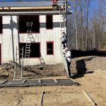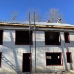 The next week Robbie, Nikki, Anthony, James and Joe did the rest of the roof, leaving the vent covers and a few pieces of ridge cap to be installed. Great to see it and know that the house would be water tight. Next step the windows. The boys were around long enough to tape waterproofing membranes to the windows and finish the strapping and vapour barrier in the house.