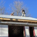 The back half had to wait for the LVL beams to be installed at the back of the trusses above the porch area to support the weight of the tin. From there, the roof edge and fascia boards had to be put up. The crew were split between the house and a rough roof in town in Alexandria. It would be another week, well in to November by the time the back would be done, but the ridge cap and vents still needed to completed.