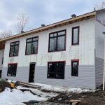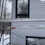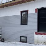 As Christmas approached, with the weather still rather mild, more siding was put up and the downstairs door was installed. I spent some time cleaning up, putting in the door locks and getting the house ready for the break. No one came to work during the holiday period, so securing the house felt good. Nice to be able to use keys. Just after Christmas, Lena and Iliana came to see the developments. We picked up some sandwiches and had lunch in the rather comfortably heated basement. We’ve come a ways, but still lots to do.