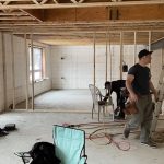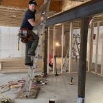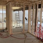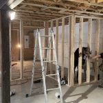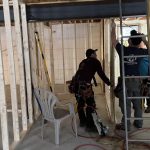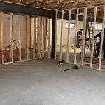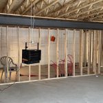 On the Monday after New Year’s I joined the boys who were working on the siding. I spent the time spraying foam insulation in the eaves in preparation for Rockwool bats. Things were going going well, except that James and Joe were running out of screws. A number of attempts to find more ended up dry. A small nightmare. The siding on ICF needs to have a wide head and be 1.5 inches long. Hard to understand, but wide head screws are not an easy find. The siding had to be set aside and we moved to the divisions in the basement.