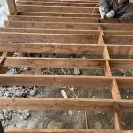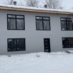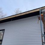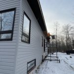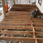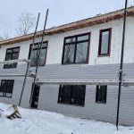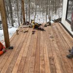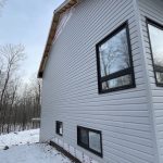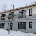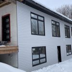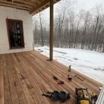 The cladding continued in the mild weather. Joe and James, with an occasional visit from Niki, worked on ladders, scaffolding and, finally, the genie lift to complete the vinyl, soffit and fascia. Early in January, they also assembled the deck. The results are fabulous. As unsure as I might occasionally be about the suitability of the inside dimensions, those of the deck are much what had been hoped for. So glad we pushed the garage forward to be flush with the front of the house thereby adding a foot to the width. Screened in, it will be a great summer spot.
