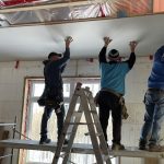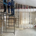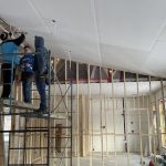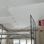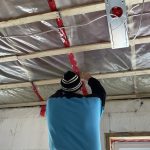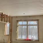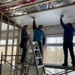 As the month of January drew to a close and February began, the activity has been steady. There were the inspections of the electricity and plumbing, air barrier, as well as the roof and framing. The first three passed, but the roof requires a bit more bracing, and the deck will be examined on the next visit to complete the latter. The truly exciting developments include the beginning of the roof insulation and the first foray into drywall. Dennis and I are handling the former, and brothers John and Richard are doing most of the latter. Real spaces and real warmth.