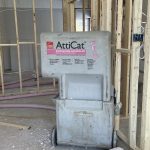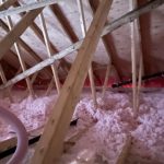 The roof had to be inspected before the insulation could be done. Some bracing was required. It had been missed in the build. We had to have the building inspector explain exactly what was needed. When I finally figured it out, the inspector said many contractors miss it, given that the requirement is obscure and the bracing counterintuitive. Dennis was baffled, but we complied and even added more bracing than required in places that appeared to him to be actually useful. After that we did the Attic Cat routine. I was feeding the machine and Dennis was up in the rafters blowing it in. It took a couple of days.
