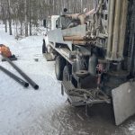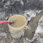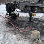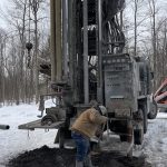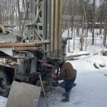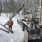 They arrived at 11, and it took about 20 minutes to select a spot to dig with me and then set-up. About an hour of drilling before lunch got them down to around 40 feet. Soon after lunch, they hit bedrock at 54 feet and set steel pipes into the hole to be embedded in the rock. Some mud was already starting to show. They continued to dig from within the pipe and soon enough water was coming out. The driller looked at me with a thumbs up. He later told me he dug to the minimum depth of 80 feet and the flow was 50 gallons a minute. No issues for water supply.