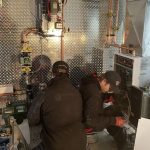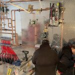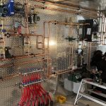 Doing cooling with the heat pump may be a challenge because current technology would have the cooling done infloor and not forced air — not particularly efficient. This is where this house is serving as a bit of R and D for Neil. This is Neil’s first electric boiler install. It’s about one third the size of a propane boiler, and twice the heating capacity of what the HVAC plans called for. This is to correct for the lower R-value in the actual house walls. The idea is to run a season with the boiler, see how well it heats and how much it costs. If it is efficient in both senses, the expense of a heat pump may not be warranted, and we might just add a cheaper conventional air con unit. Also, in the meantime, these air to water systems are new and developments are happening all the time. Neil is staying up to date with the tech by following seminars and industry news. I will certainly be checking the latter. Possibly, in a year or two, some other answer might present itself. He wants to keep chatting about things and use our experience as a staging ground for his future practice. I told him we could put a Chenier Mechanical flag out front. He’s up for it.