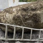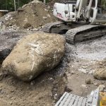 On Saturday, Lena came down to see the progress and the beast. She was delighted with both, having hoped we might get a very large boulder from the dig. This one doesn’t disappoint. At $125 for the hour it took to dig it out, it makes it a fairly expensive lawn ornament, but hey, it’s the biggest on the block — so far.