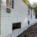 On the back wall, Robbie had set the 3 big windows at 20 inches off the floor, in line with the designer’s specifications. I was certain that the designer told me code dictated that the windows could not be lower, but Robbie said he’d never heard of this. In any case, base height was fine, and actually. an inch or two higher in order to best place the rebar. The next issue for Robbie was that this meant that the top of the back windows would be 8 ft and not 7 like the front. This would go against the convention where all windows are lined up. In my view, front and back needn’t be the same, and I told him a little asymmetry never hurt anybody. We’ll see, once fully done and lived with.
